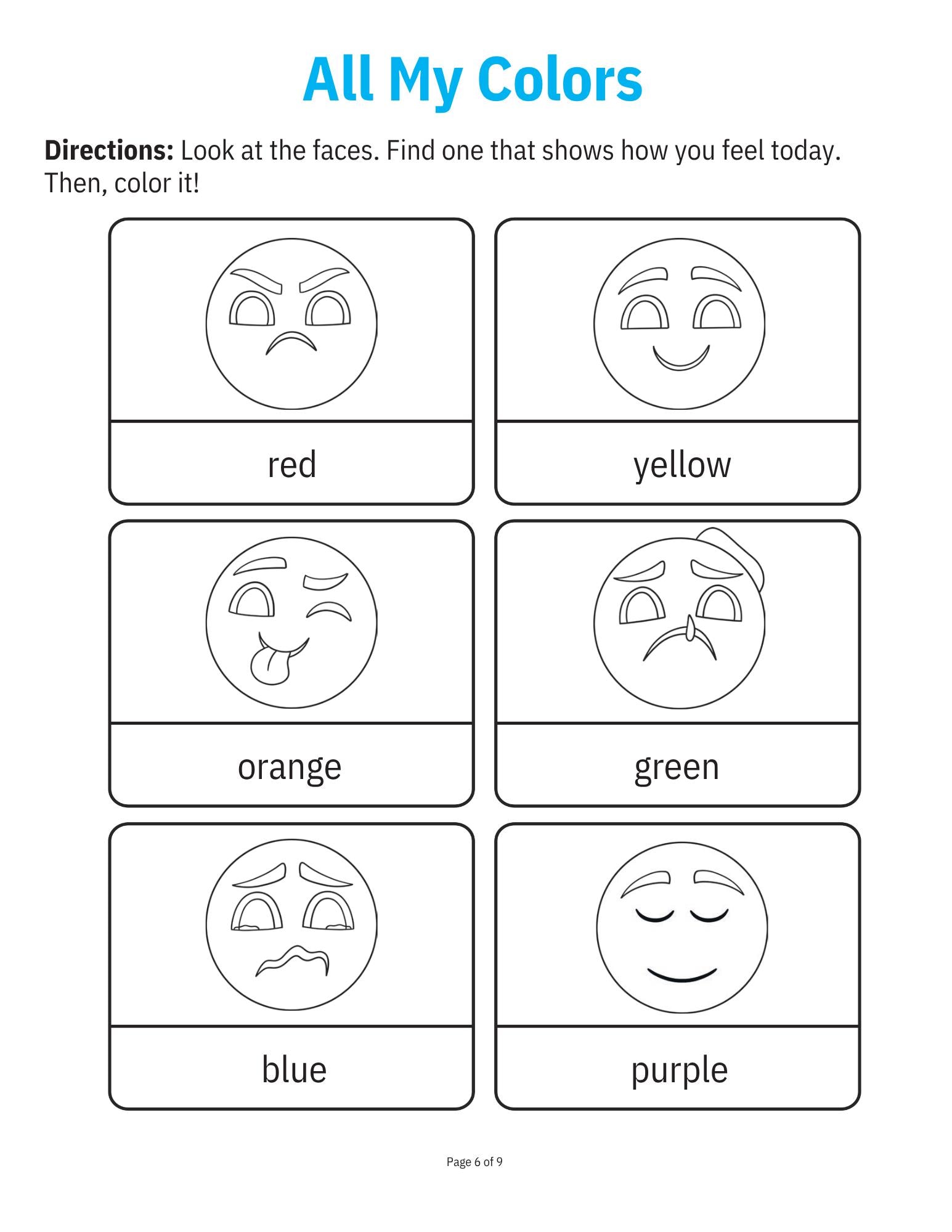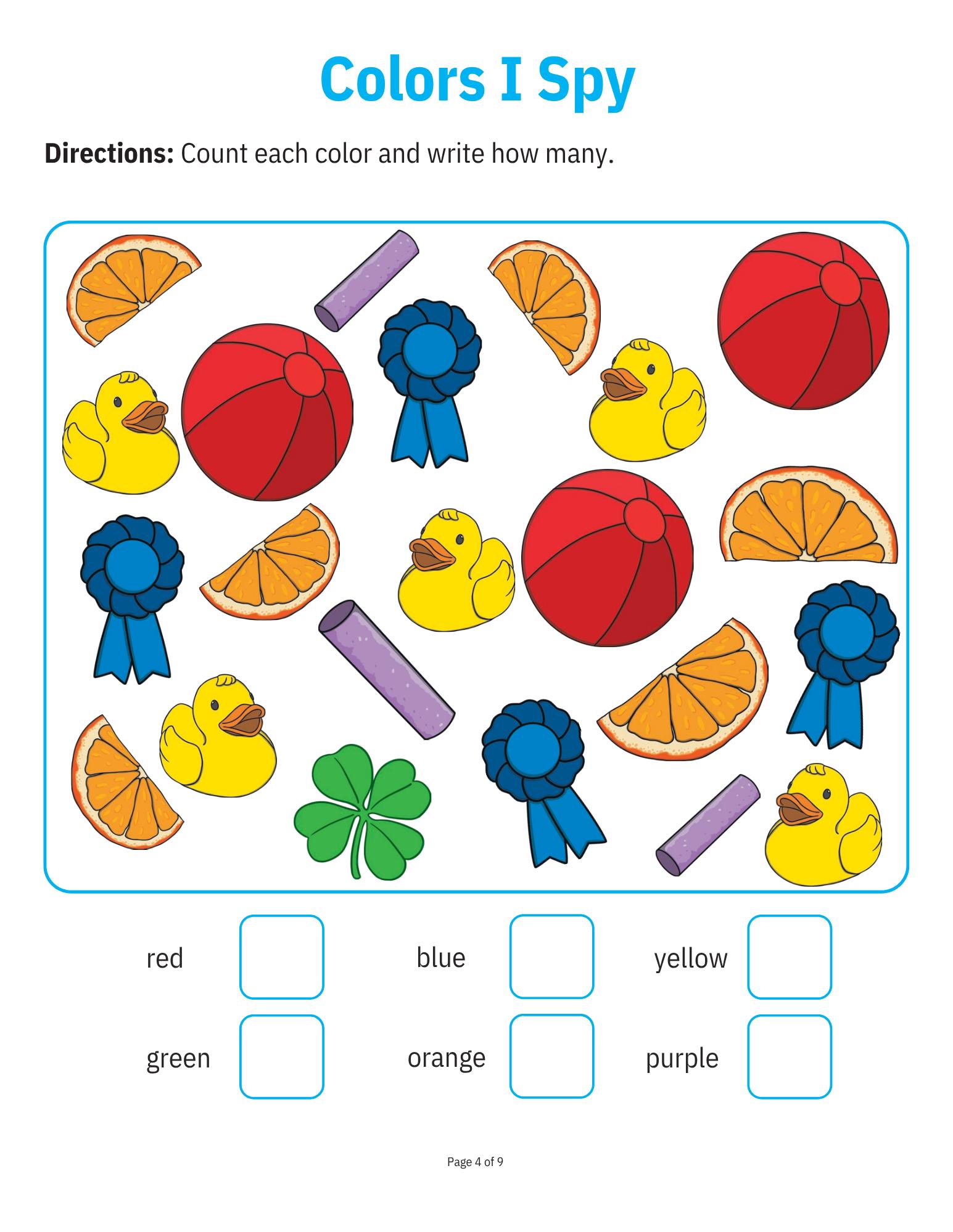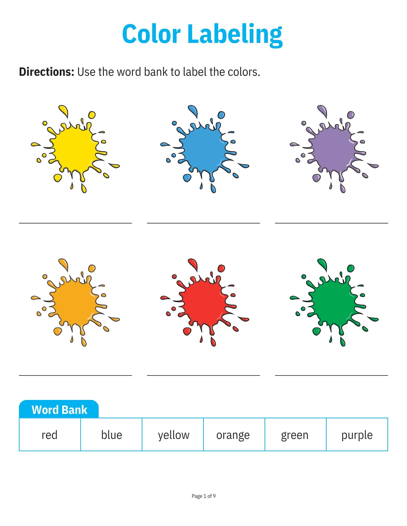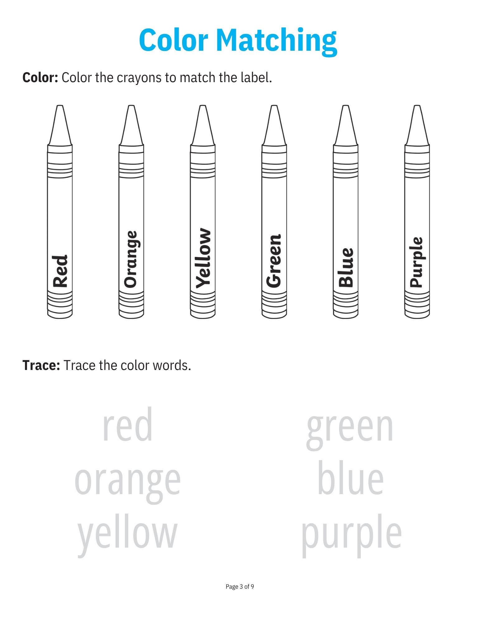 All about Colors Work Sheet Packet Typically used for