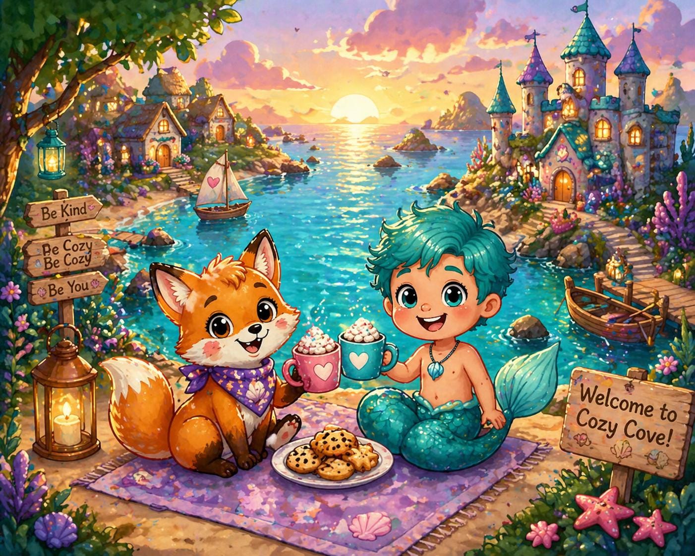 Step into the magical world of Cozy Cove, where a fluffy fox named Luna and a cheerful merman named Finn invite your child on an unforgettable adventure!